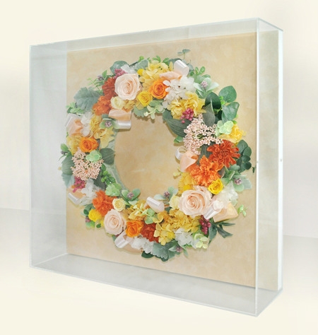 アクリルBOXに入った、プリザーブドフラワーの作品です。