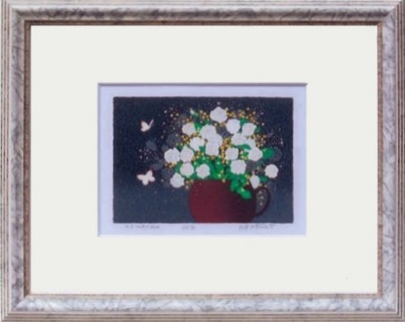 花と蝶の描かれている作品です。