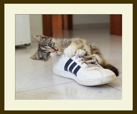 Foto.Q 靴ひもで遊んでいる子猫