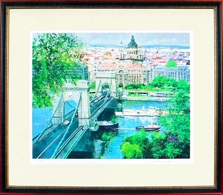 ドナウ川に架かる橋と街並みを描いた作品です。