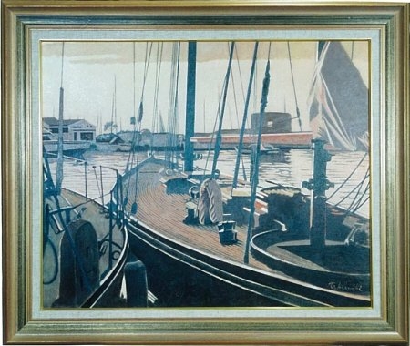 停泊する船の描かれた作品です。