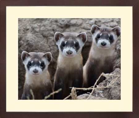 作品名 顔を出す3匹のクロアシイタチ