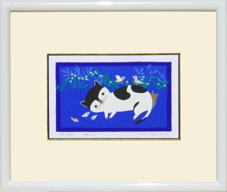 ネコと小鳥の描かれた作品です。