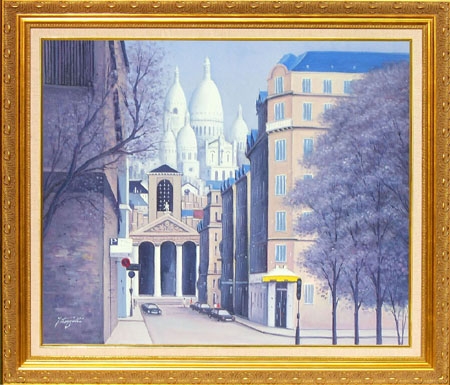 中島 達幸 (F20号)巴里の街 モンマルトルのサンレ・クール寺院