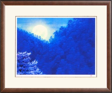 青い森と桜と月の描かれた作品です。