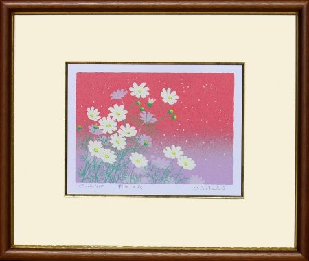 白いコスモスの描かれた作品です。