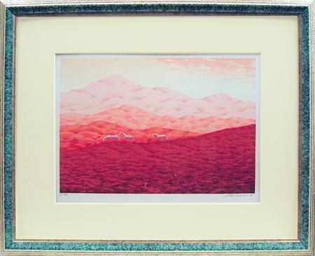 草原と馬の描かれた作品です。