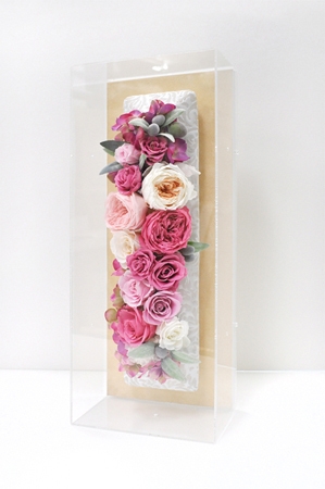 アクリルBOXに入った、プリザーブドフラワーの作品です。