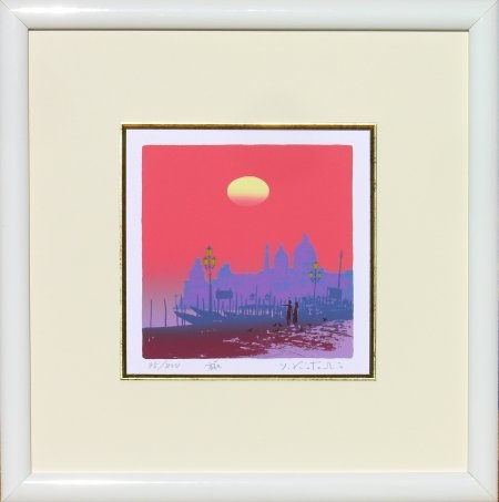 夕暮れと船の描かれた作品です。