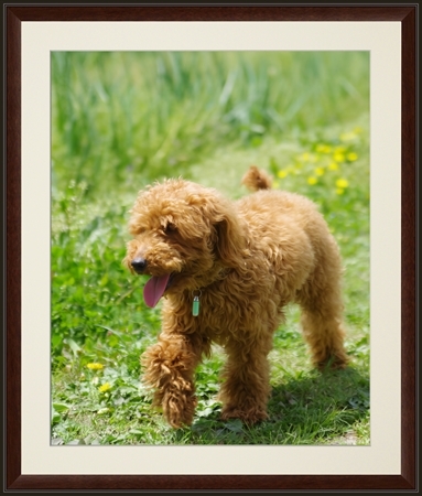 作品名 畑の側を歩くトイプードル